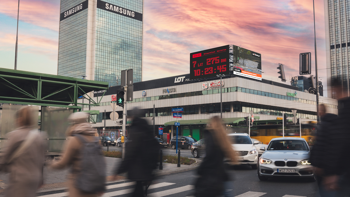 The clock, says Screen Network, in Warsaw City Centre is counting down to the climate change calamity. Each day brings us closer to an ecological and environmental catastrophe. According to scientific calculations, with the current level of CO2 emissions, in less than 8 years irreversible climate changes will occur; global temperature will increase by 1.5 degrees. This moment is known as the point of no return. We must start acting here and now and encourage the largest possible amount of people to act. A clock has appeared on the screens installed in the epicenter of Warsaw, transmitting the countdown towards the tipping point.