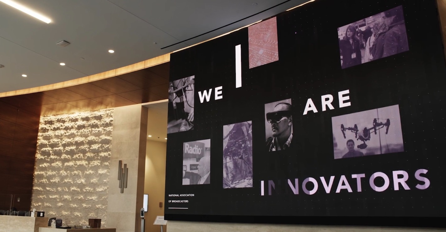 The National Association of Broadcasters, or NAB, recently relocated its headquarters, and the new venue features a pair of experiential digital features that greet and inform visitors.