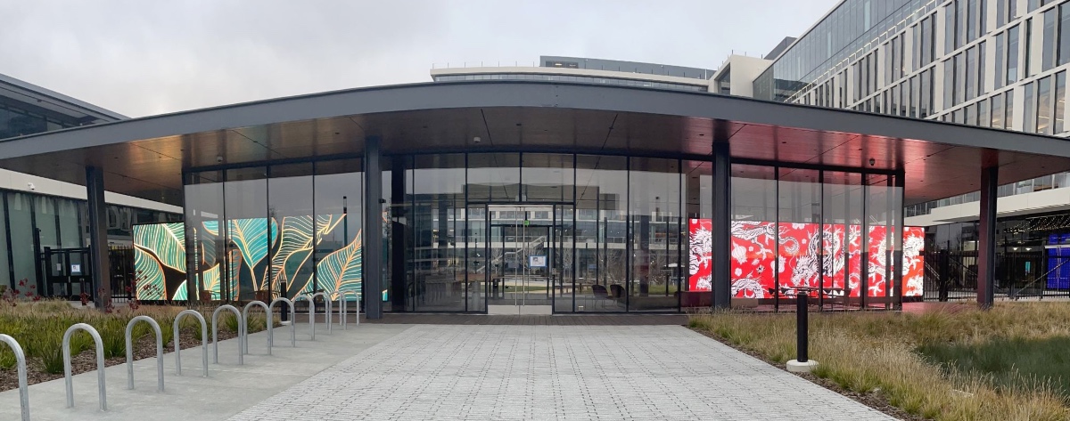 It’s at the Verizon Frisbee Campus welcome center in Silicon Valley, using LED tech from the Canadian manufacturer Media Resources and put in by integrator Diversified.