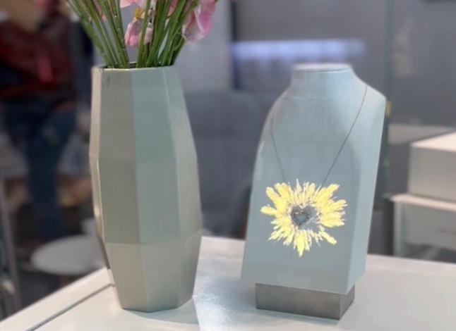 It’s a tabletop projection display by Dallas-based Glass Media for the lab-grown diamond brand Clear Origin.
