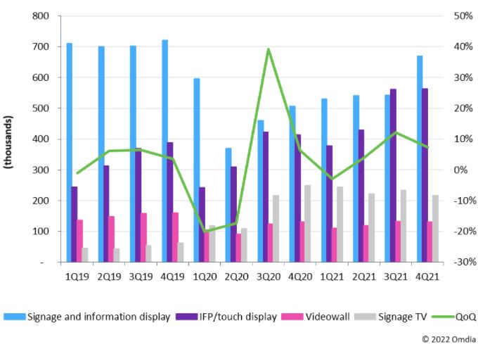 Research analyst Tay Taehoon Kim on Omdia pushed out a brief on Linkedin that says global public display shipments grew 10.2% QoQ in 4Q21.