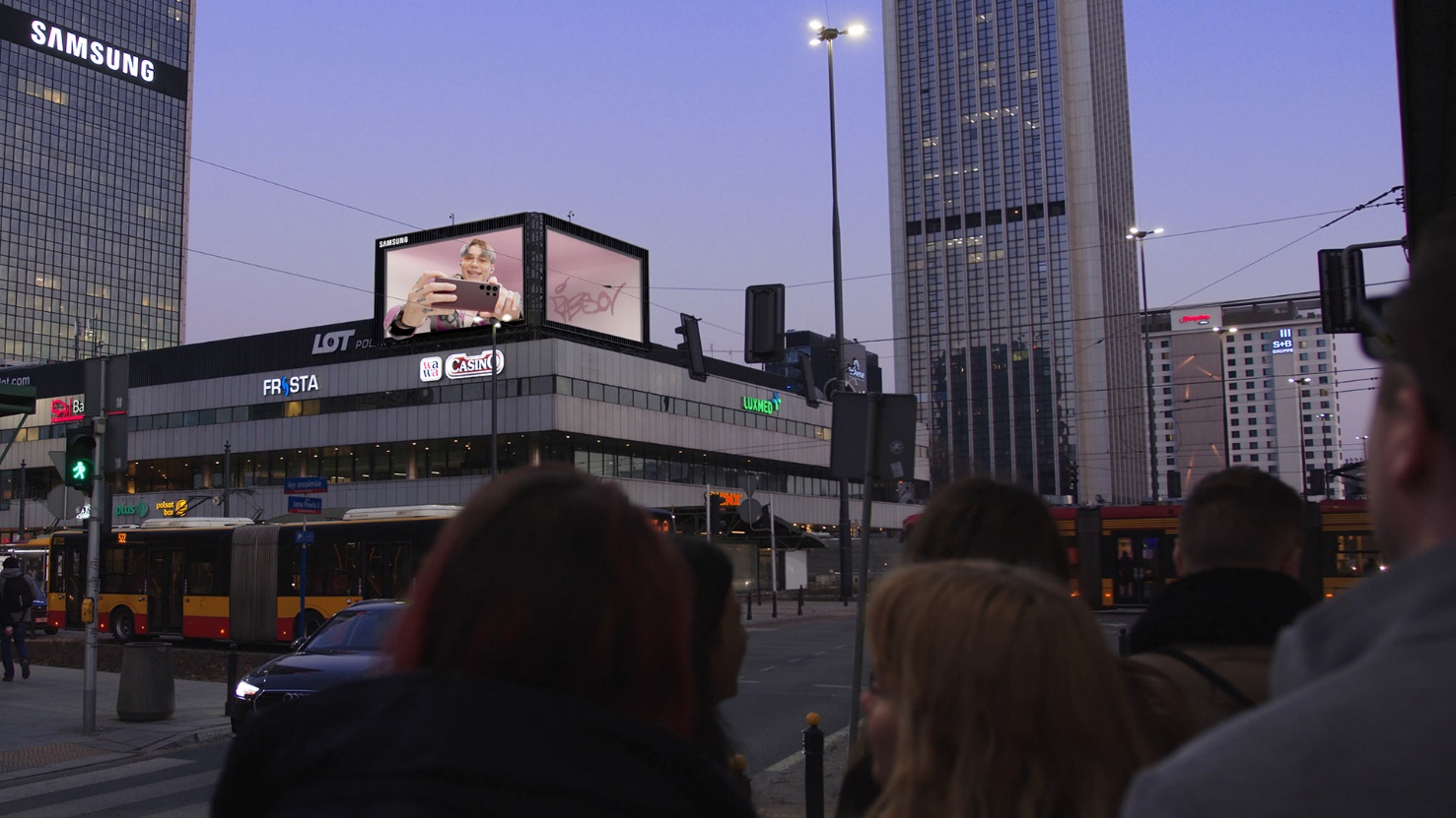 The Galaxy S22 campaign went live last night on flanking corner screens, operated by the media firm Screen Network, on the Marriott Hotel at Jerozolimskie Avenue in Warsaw.
