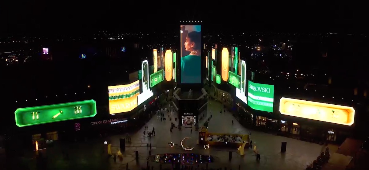 This is a screen takeover done for the crystal glass brand Swarovski – a VERY ambitious one-night branding event at a retail complex.
