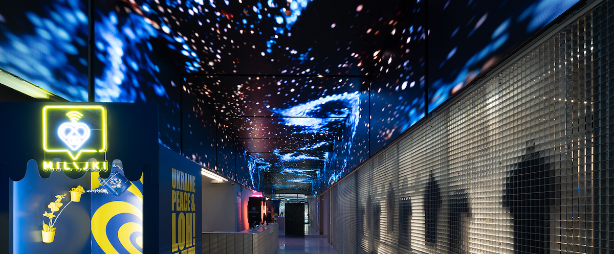 The venue has since added a set of LEDs that act as a canopy in the lengthy entry corridor (main image above).