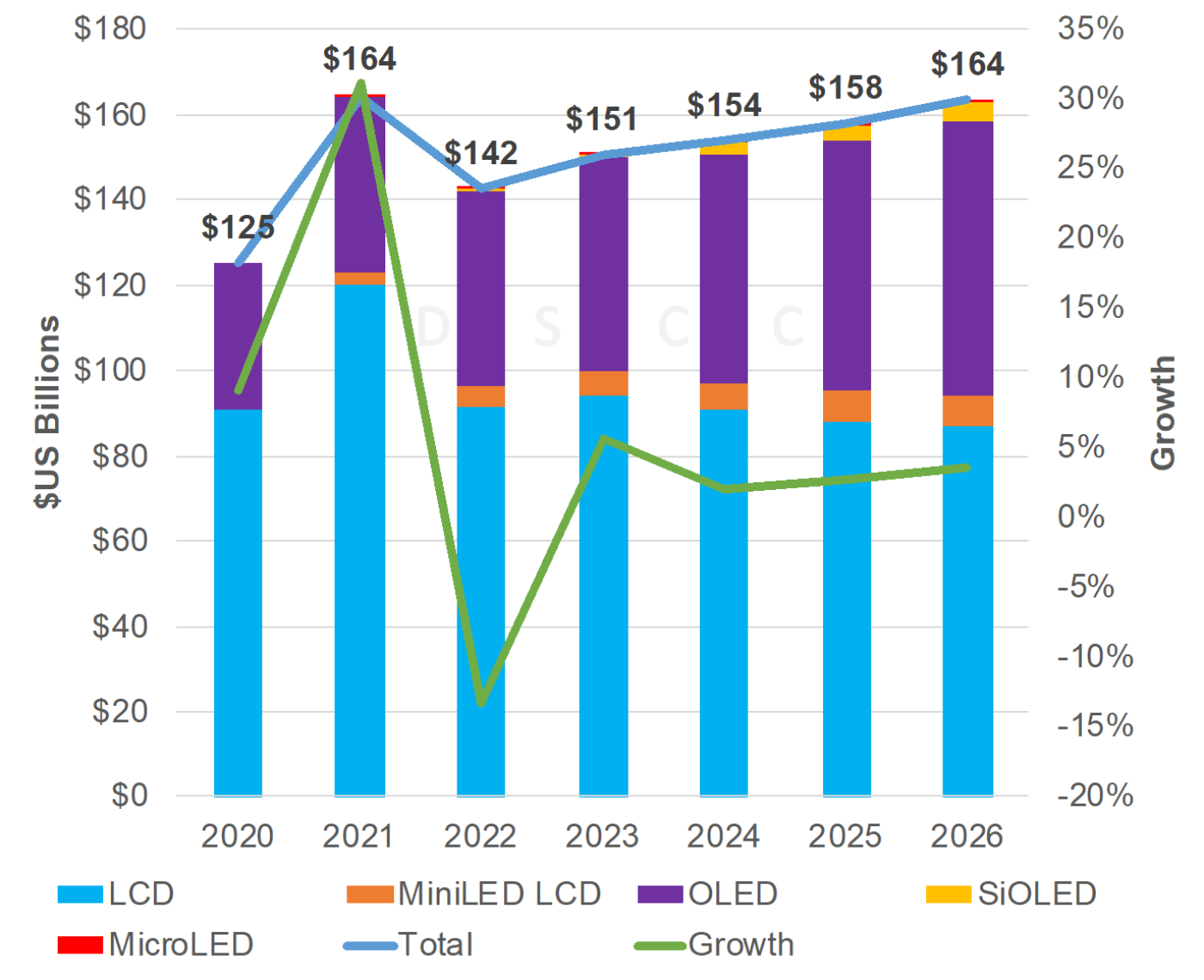 Young notes that while most industries, and by extension consumers and end-users, are seeing price increases for goods rise on inflation, supply disruptions and shortages, display prices have been, and are still, falling this year due to a lot of new LCD capacity coming online, as well as slower than expected demand growth.