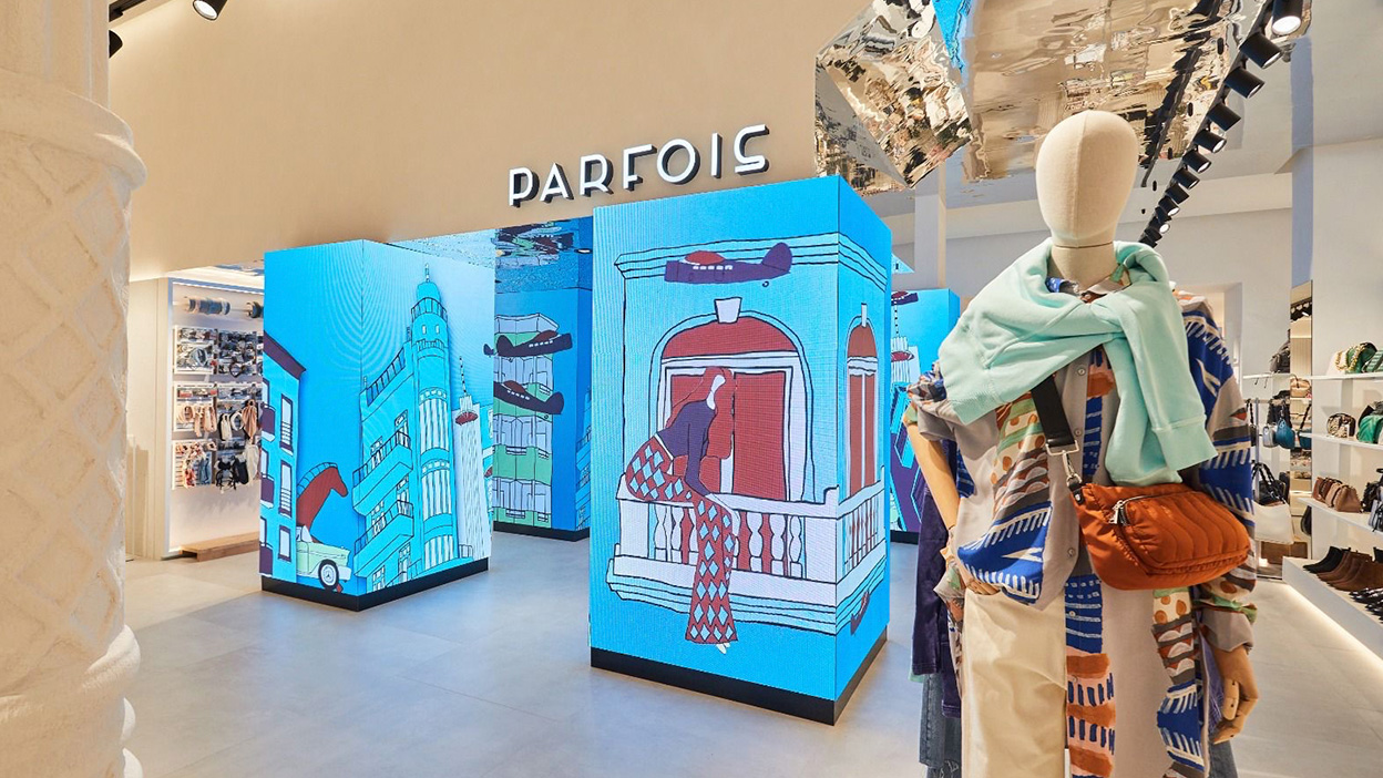 The Barcelona creative technology shop Instronic does very nice work – the latest example a flagship store in the historic city center for the Portuguese fashion label Parfois.