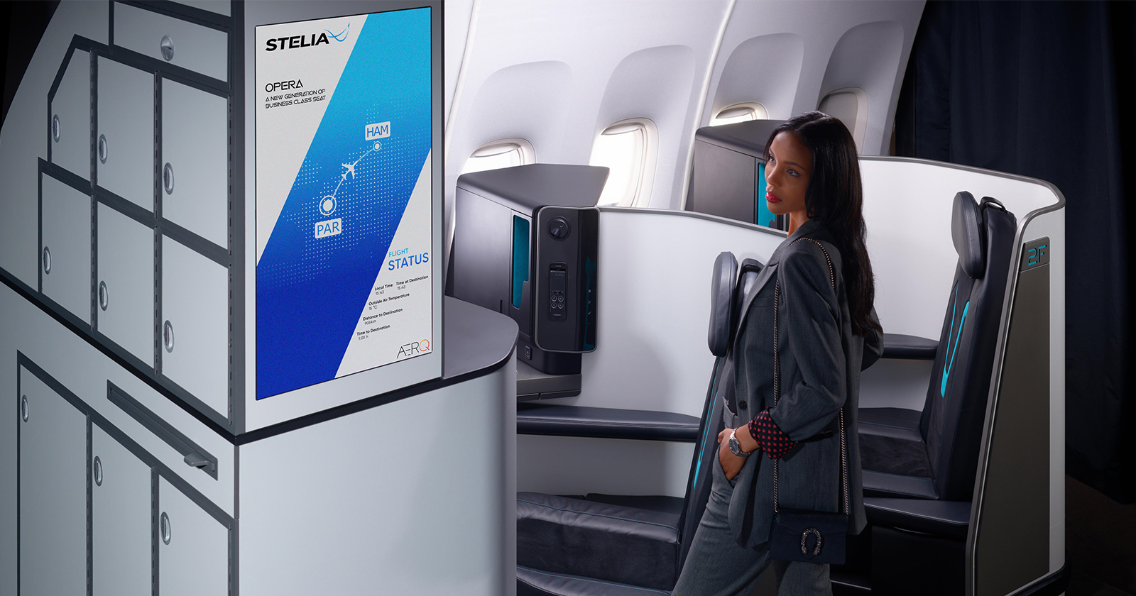 STELIA Aerospace, which makes premium passenger seats, and AERQ, which does digital cabin solutions and is a joint venture between LG Electronics and Lufthansa Technik, are collaborating to propose an integration of AERQ’s OLED-based Cabin Digital Signage displays on STELIA Aerospace products for airlines.