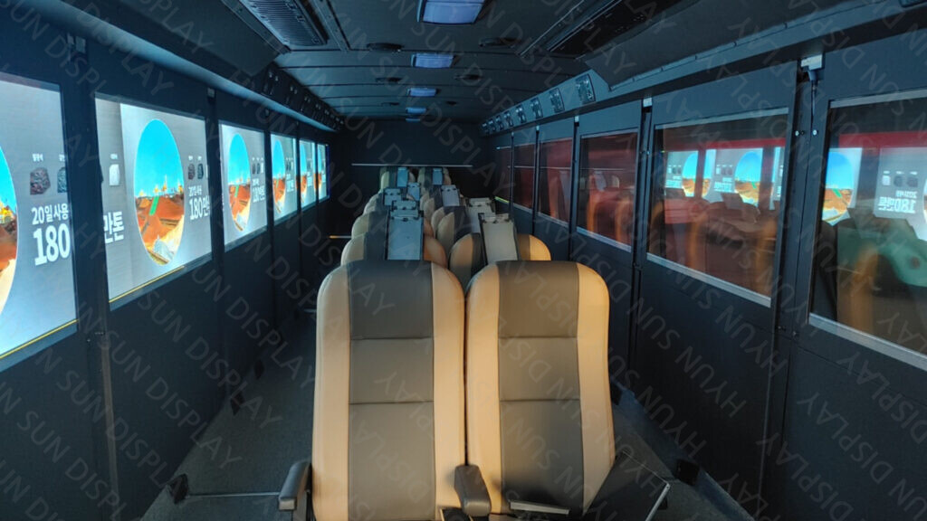 All the information is in Korean and doesn’t give me many answers when translated, but I was nonetheless intrigued by this Youtube video of a bus specially kitted out with transparent OLED displays in all the windows.