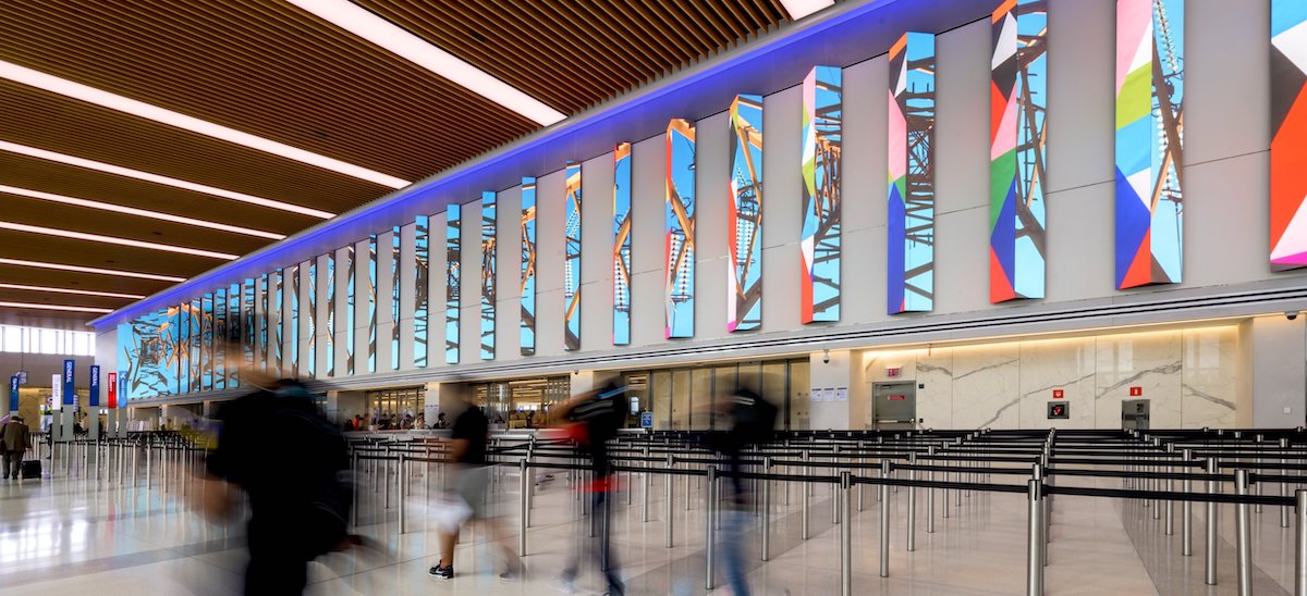 If you get past the sheer wonder of New York’s LaGuardia Airport going from quite awful to quite nice, one of the true highlights of Delta’s brand new Terminal C is a grand-scale fine pitch LED mural that welcomes passengers into the departure hall.