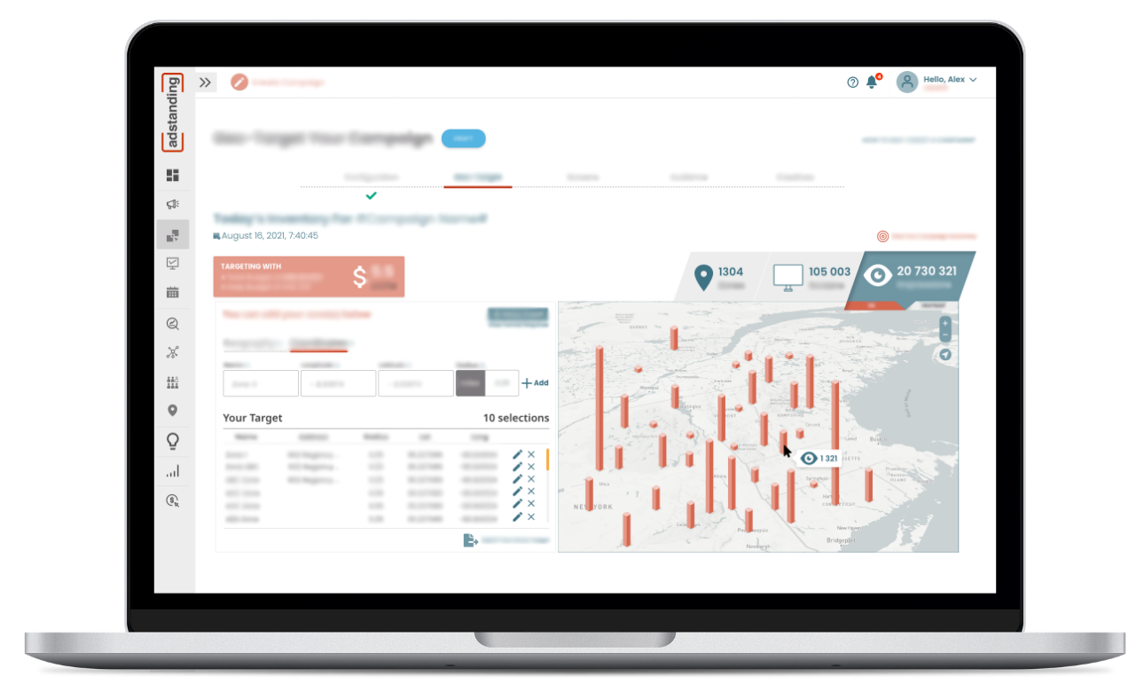 Adstanding’s brand new self-service application is a singular destination for brands, media buyers, and inventory providers for DOOH planning and buying. Advertisers can use Adstanding’s platform to access a network of 250,000 digital screens across 30 different environments and generate as many as 42 billion impressions each month. The company launches with partnerships with major OOH media owners and programmatic platform providers across North America.