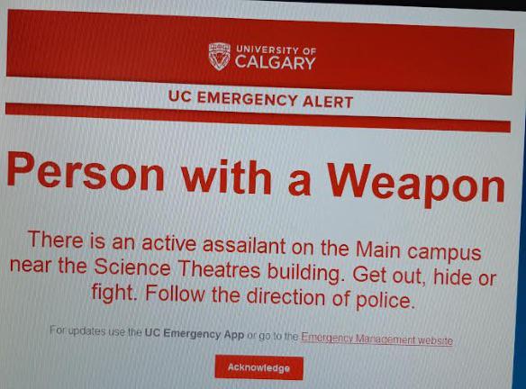 The University of Calgary’s emergency alert system is under scrutiny after reports of a knife-wielding man on campus failed to reach everyone who had access to the app. Calgary police said they’ve found no victims, witnesses or an offender following multiple stabbing reports that had officers racing to the University of Calgary on Tuesday night.