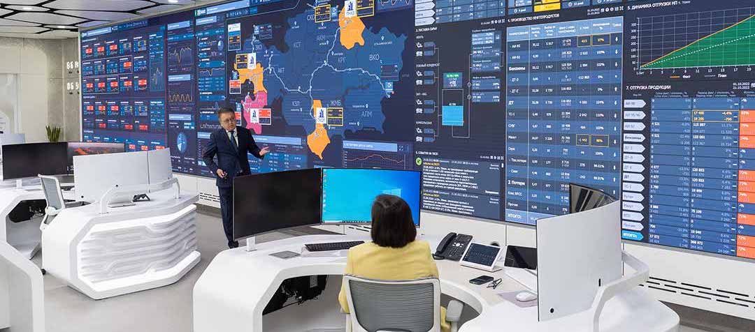 Daktronics manufactured the video wall – which measures 2.74 meters high by 14.64 meters wide, covering one operations room wall with 1.2mm LED. The job was sold and put in by audiovisual integrator AG Tech Kazakhstan.