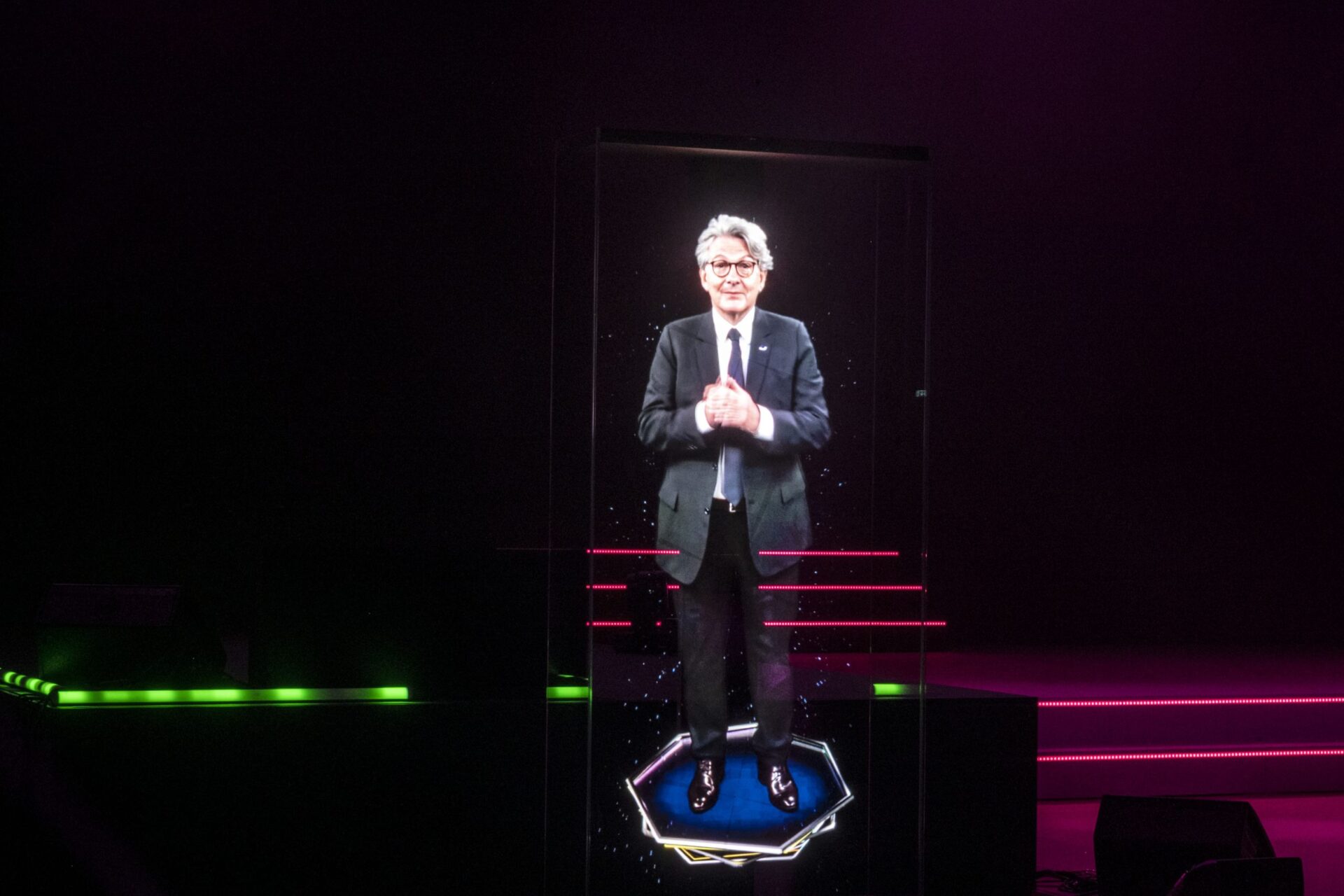 So it’s interesting to see how the UK company HYPERVSN goes at this, using an array of its madly-spinning LED light sticks. The company was engaged by the organizers of Italian Tech Week to include a presentation from Thierry Breton, the EU Commissioner for the Internal Market. Breton couldn’t make the trip, so he appeared using what HYPERVSN calls its Holographic Human set-up.