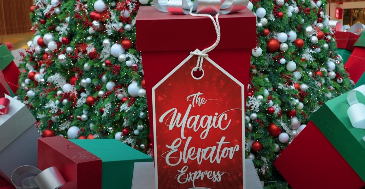 The “elevator” is a clever cube with doors, made to look like an elevator, with on-screen content that suggests to kids that they really are travelling to the North Pole to hang out with Santa and take some photos. The experience is in an ante room made to look and behave like an elevator that has windows to see outside. Kids and parents “travel” to the North Pole, and are admitted into a room where Santa is waiting, surround by windows that are really screens running visuals that suggest the North Pole. They exit through the same faux elevator and the digital journey is done in reverse.
