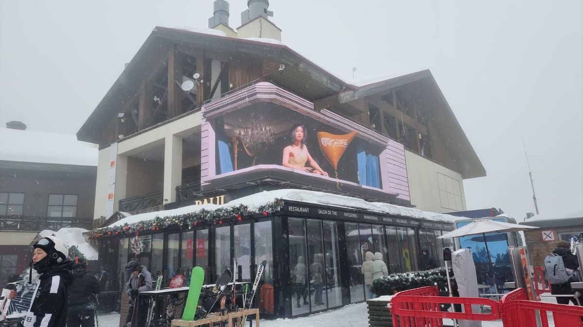 The argument that LED display tech has been mainstreamed is pretty strong when you come across images of a pretty big, 90-degree corner screen on a restaurant atop a ski hill in Kazakhstan.