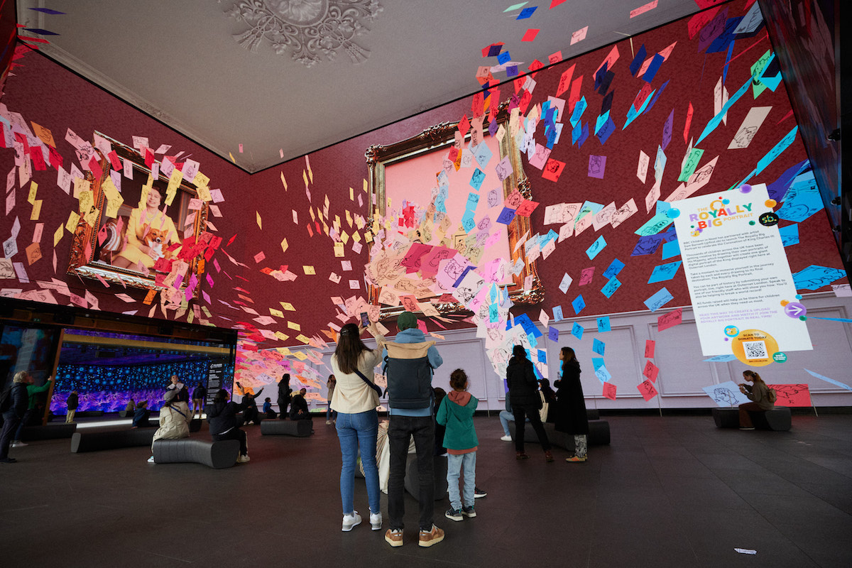 A charitable initiative called BBC Children In Need partnered with artist Sam Barnett and the operators of Outernet London to develop and run what was dubbed The Royally Big Portrait – a huge interactive display in central London with visuals drawn and submitted of King Charles III by members of the UK public ahead of this past weekend’s coronation.