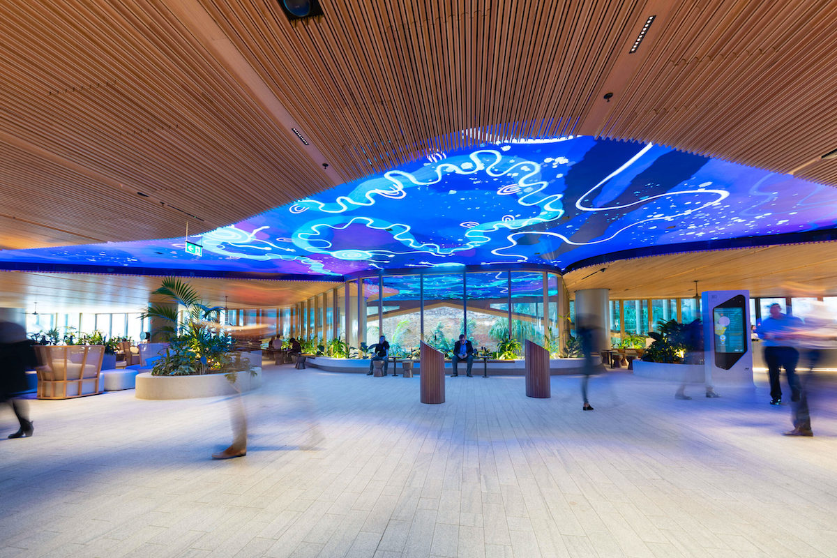 The property developer Mirvac commissioned First Nations artist Rachael Sarra to work alongside the creative technology and design agency VANDAL to transform the building – Heritage Lanes – with a piece called Guidance from the Stars.