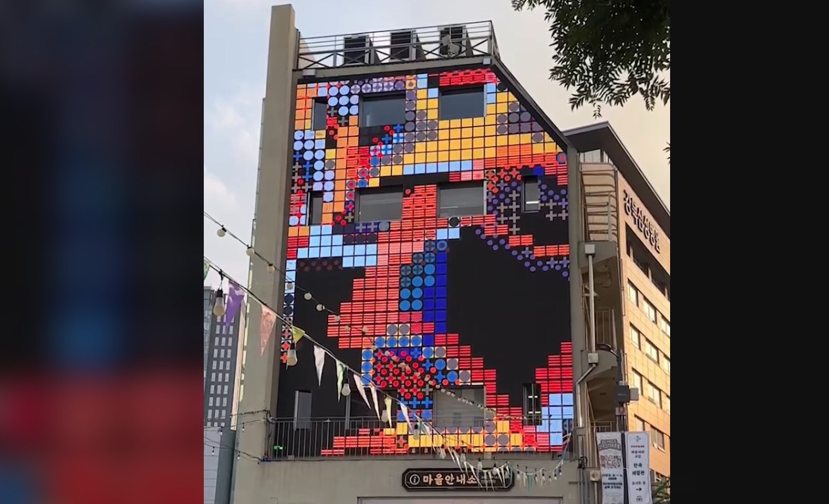 Called Host and Ghost, the piece is running on the Donuimun Museum Village Media Facade in Seoul this summer – the latest in a rotation of public digital art pieces running on the LED screen.