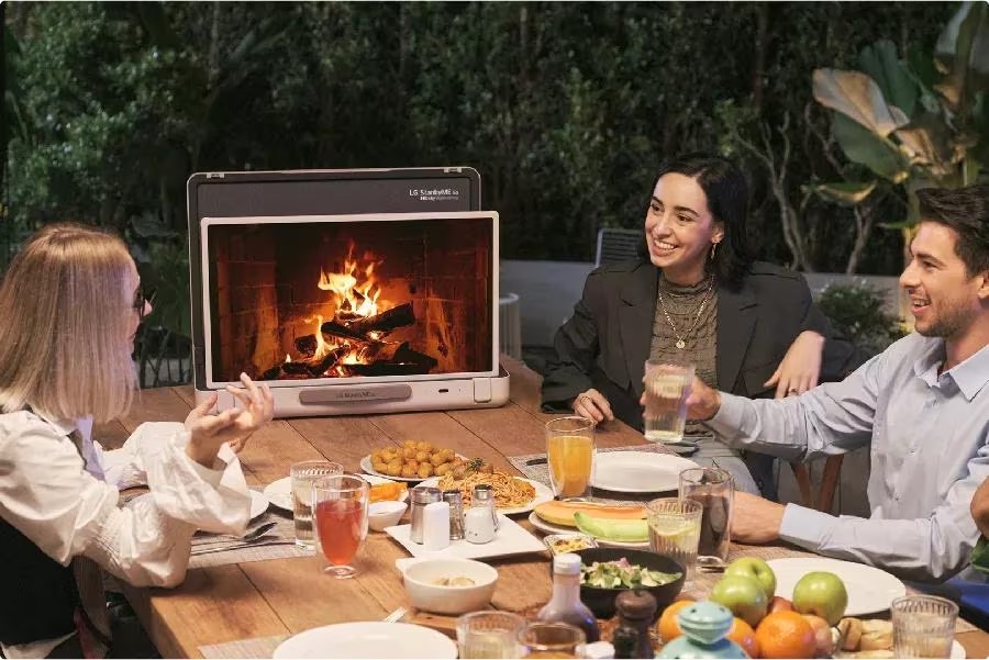 LG is positioning this as a lifestyle product – something that could be taken along on picnics and camping trips. But give that it is effectively a smart display just like other webOS smart displays used for digital signage deployments, I could see this being quite handy for sales and biz dev people on sales calls and at micro trade shows and fairs where they’re working off a folding table in a hotel meeting room or hallway.