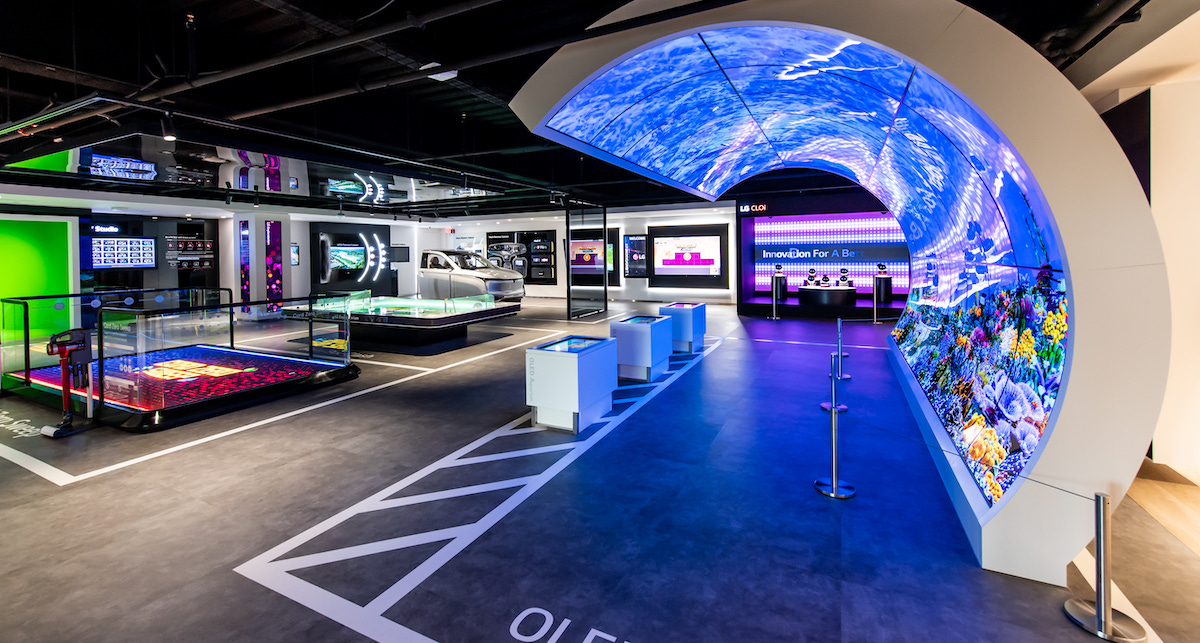 The 350,000-square-foot building has, you’d expect, a LOT of LG technologies, including hundreds of commercial displays used in a variety of ways.