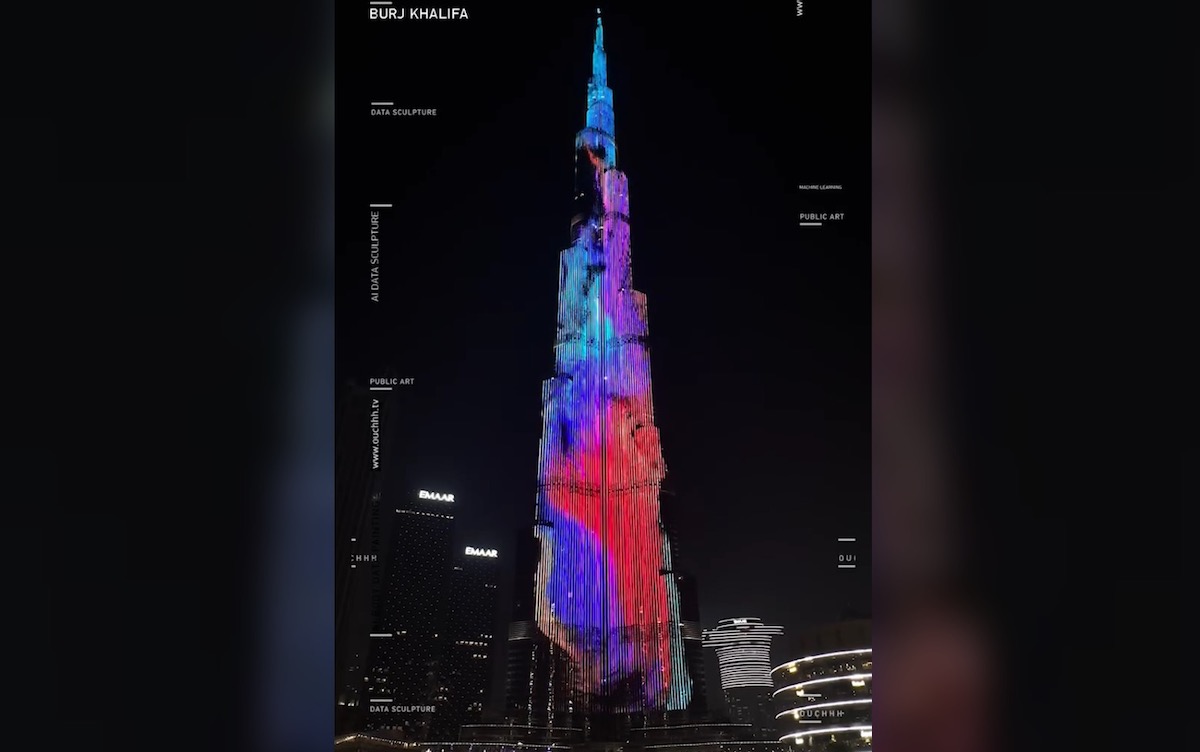 This would have to be the largest LED surface to date used as a digital canvas for public art – one whole side of the world’s tallest building.