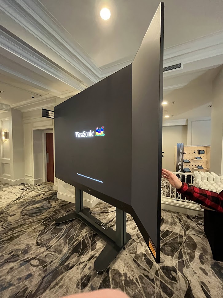 The distinction here is that these big fella all-in-one LEDs are intended to be easy to use, but the larger ones don’t tend to just come out of a box like a big-ass consumer TV. They still need to be assembled. Between the two folding parts of the screen, and the height adjustment, this thing would (I assume) be relatively easy to re-position around a workplace, events venue or, I suppose, retail environment.