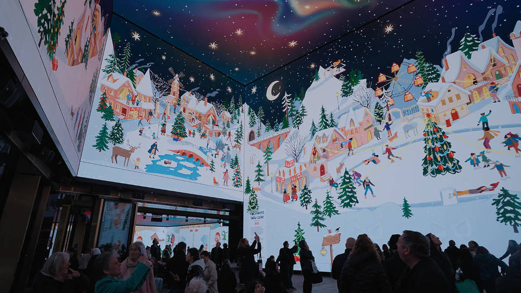 Walk into a life-sized snow globe and see hand-illustrated villagers going about their day, having snowball fights, shopping and getting ready for the Christmas celebrations. You’ll also be able to take part in the fun by making digital snow angels on the central screen, using interactive cameras that capture body movements in real-time.