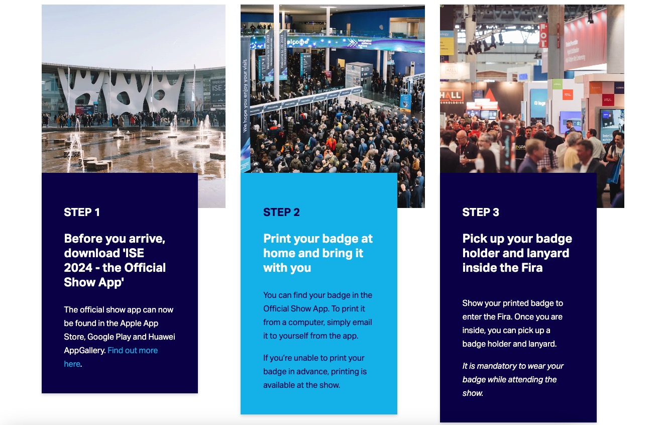The ISE site still says: To allow faster entry to the show, we are asking ISE 2024 attendees to print out their badge in advance and bring it with them to the Fira.