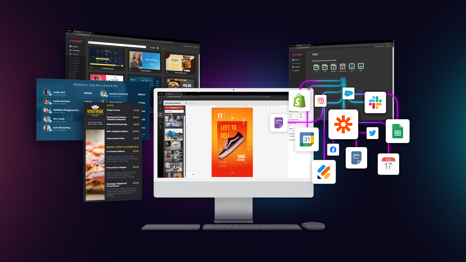 In the past, we have served our customers who wanted to display custom designs driven by their data such as sales, schedules, KPIs or employee or customer-submitted content with custom projects that took 4-6 weeks and lots of money. Many times customers would just decide not to do it. So we built Connect to allow us, or our customers to quickly connect to their data source and get a dynamically driven HTML content app running within minutes or a couple hours.