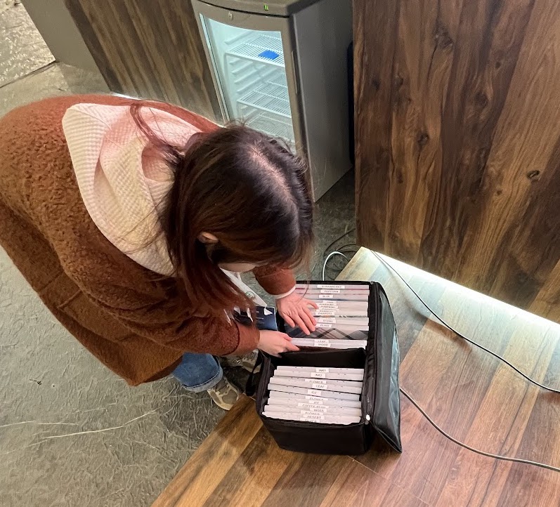 What was almost amusing – and I don’t mean this in a negative way – was how the company had a carry bag full of different tiles – kinda like a bag of different flooring or upholstery samples.