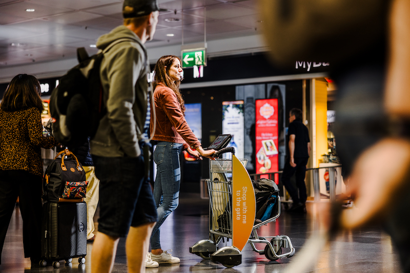 A Danish company called Intelligent Track Systems is trying to address the need in a different way – with “smart” post-security bag trolleys that have screens attached to relay information to passengers as they move around a terminal.