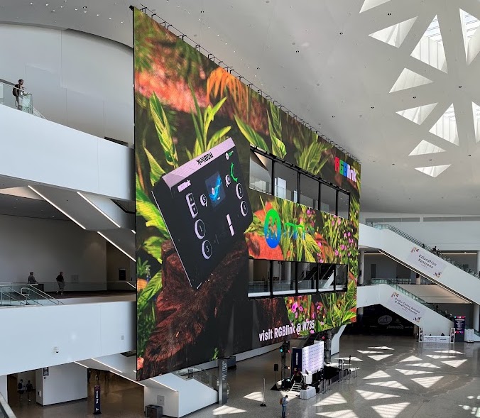 I’ve seen big displays inside convention halls – like the very big one in the new-ish LVCC West Hall … now somewhat ironically dwarfed by The Sphere now visible out that big window. The LVCC also uses that screen for exhibitor and trade show marketing.