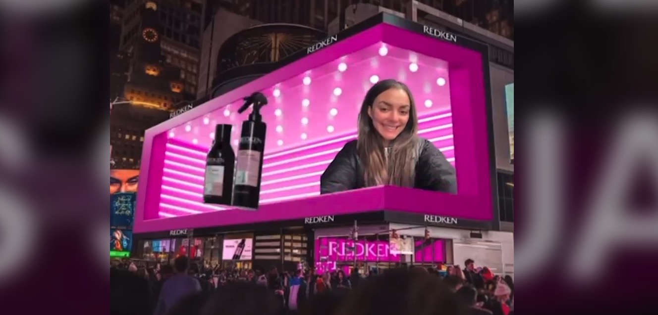 This is a campaign for the beauty brand Redken and it involved scanning a giant QR code on the billboard, which launches a web app, and encourages the users to take selfies. The selfies then get pushed to the display and appear in the content.