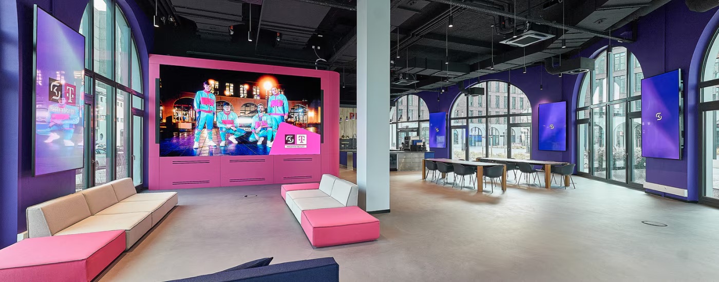 This is the new Cologne, Germany headquarters building of the e-sports company SK Gaming GmbH, a three story space loaded up with Sony pro displays, including a big 12 sq. meter super-premium Crystal LED that appears to be ready for active gaming.