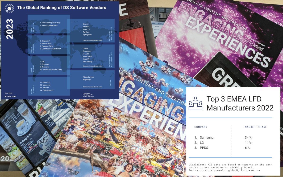 The rankings and the Market Compass in the invidis yearbook are an important indicator of the balance of power in the market for our numerous readers. We publish who has the most active software licenses, who are the largest digital signage integrators in a region and who sold the most displays.