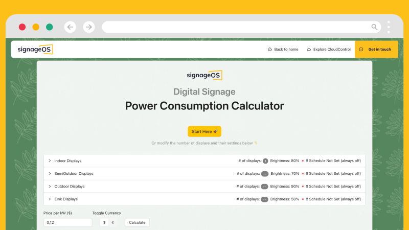 The Czech/US firm SignageOS has launched a nice little spin-out website that enables businesses to model the amount of commercial power being consumed by the displays on digital signage or digital out of home ad networks.