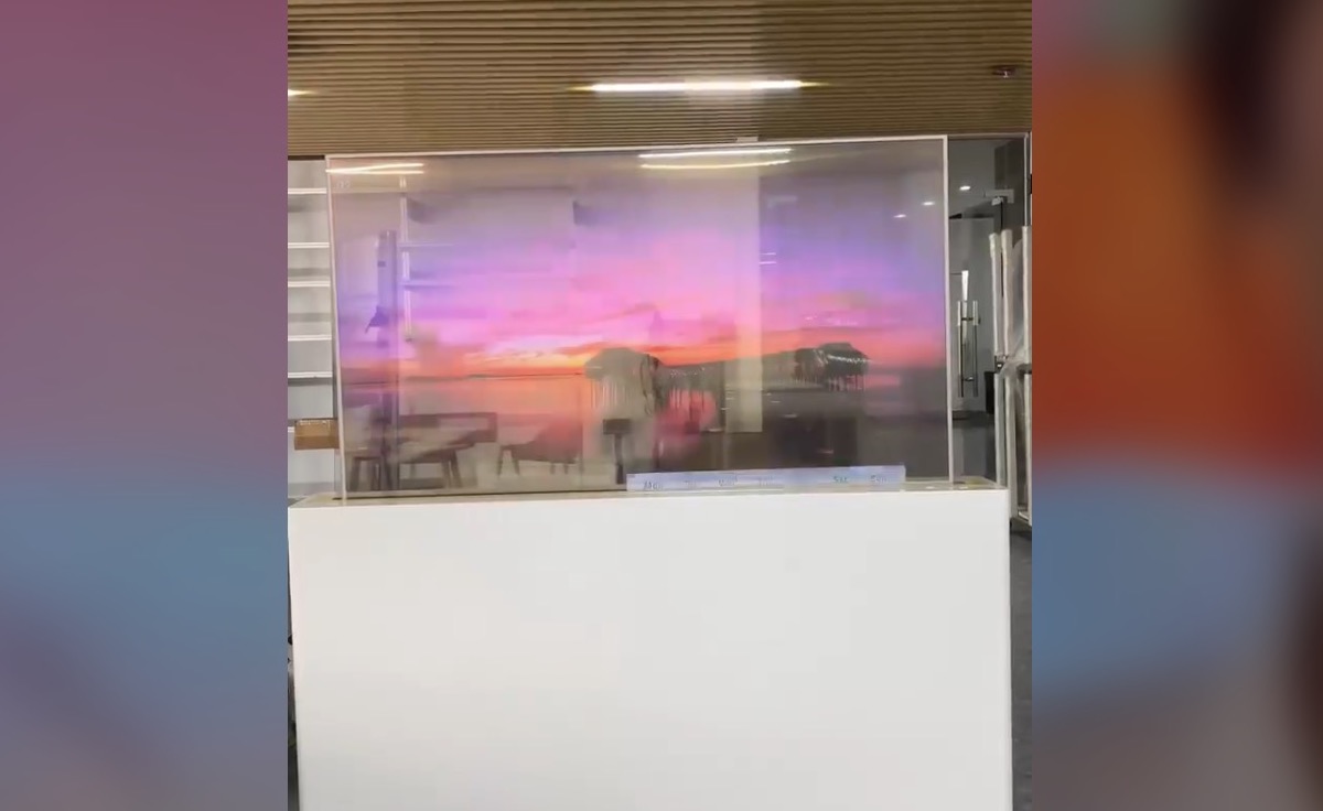 High price would likely keep these things from flying out the door, sales-wise, but this is an interesting use of a 55-inch transparent OLED as something of a display and product explainer fixture. The display sits atop a metal enclosure, and is voice-controlled to drop down and rise up kinda a slice of bread in a toaster.