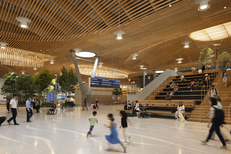 While the video walls are terrific, in the context of digital signage and AV, the overall project is beautiful, with an undulating nine-acre timber canopy that makes it feel like passengers are in a forest. The wood was sustainably and locally sourced from landowners and mills within a 300-mile radius of the airport.