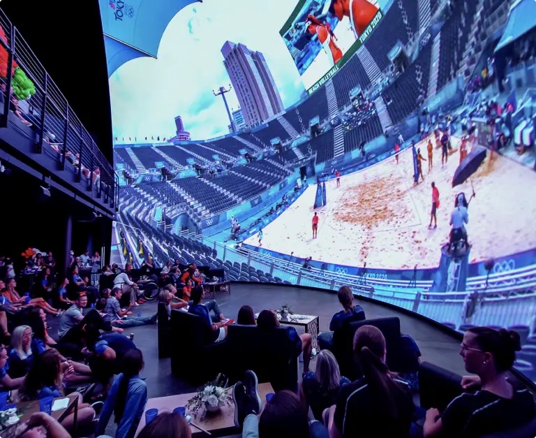 The first Cosm is in the Hollywood Park area of LA, close to the NFL-centric SoFi Stadium and the Intuit Dome, the just-opened, tech-filled new home of the NBA’s LA Clippers. Cosm has numerous components within its venue, but the centerpiece is a 12K curved LED display that is reminiscent of the inside theater of Sphere in Las Vegas. It has an 87-foot-diameter wraparound LED display, while the Sphere is 366 feet. But the viewing impact appears to be very similar, because a smaller scale venue allows seating closer to the screen, and the viewing material.