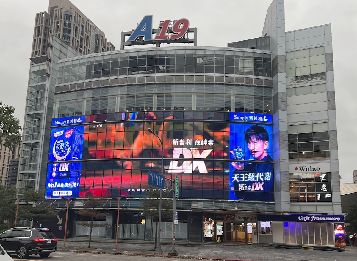 - I have seen transparent mesh here and there in my travels, but there were giant displays in windows around Taipei (see top of post). These are the ones that look like mini-blinds on the inside, but solid from the visuals side;
