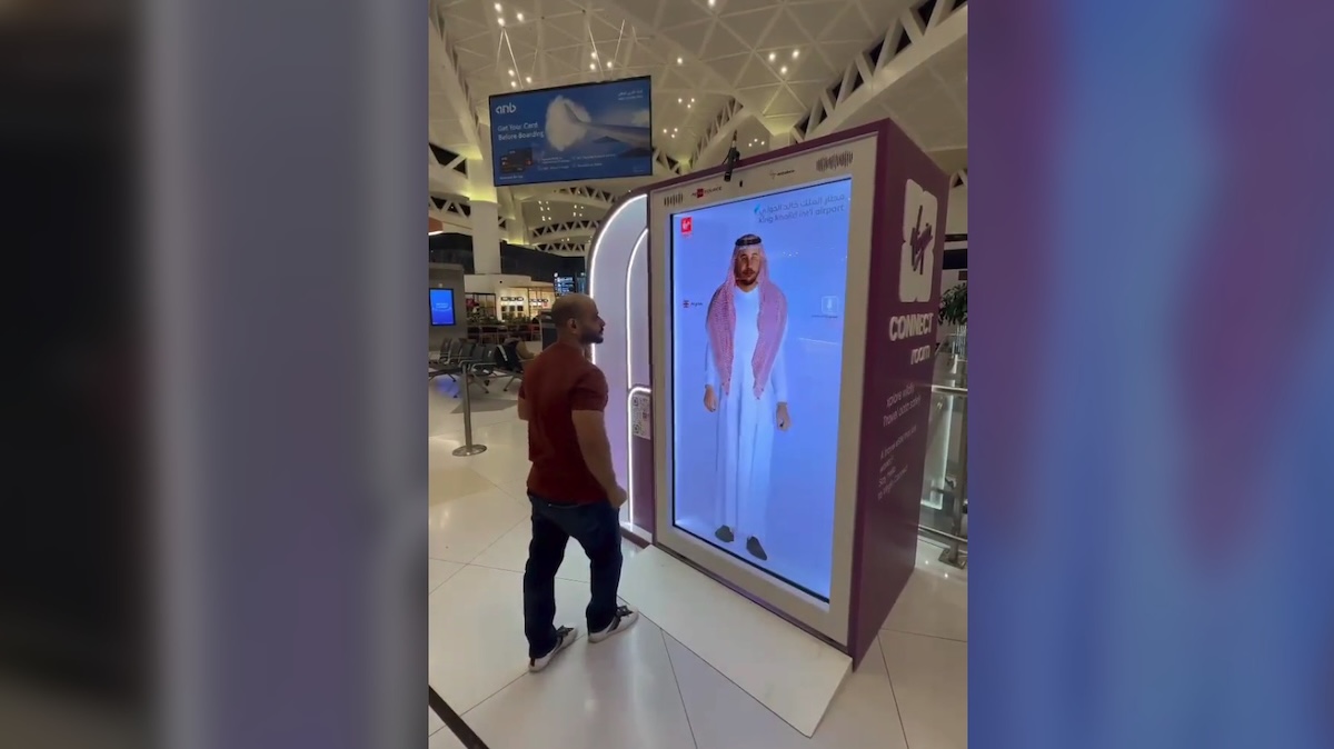 Here’s one of those transparent LCD virtual presence set-ups being used at Riyadh, Saudi Arabia’s big airport, promoting Virgin Connect eSims and answering questions, using AI.
