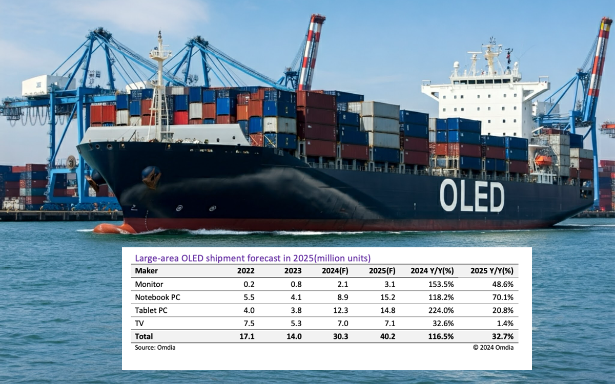 The research firm Omdia says sales for OLED displays larger than 9-inches (so not including phones and wearables) are are up 116.5% in 2024 and are expected to increase by 32.7% year-on-year in 2025, with growth primarily driven by what it describes as a booming IT OLED market (including monitors, notebooks and tablet PCs).