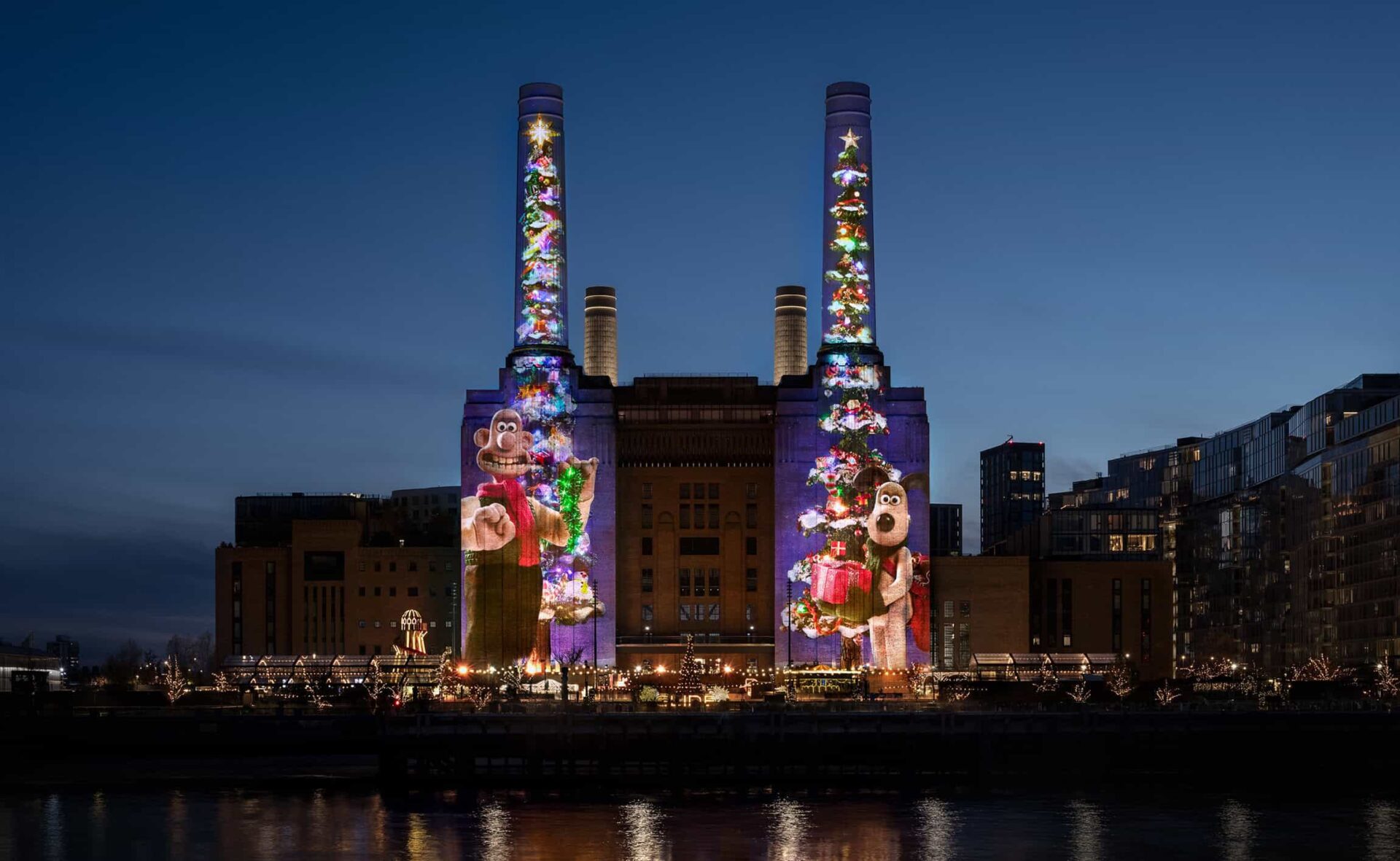 The studio that produces the animated stop motion comedy film series Wallace & Gromit teamed up with arguably the most famous tenant of the renovated and revived Battersea Power Station in London for a holiday season projection mapping show that runs until New Year’s.