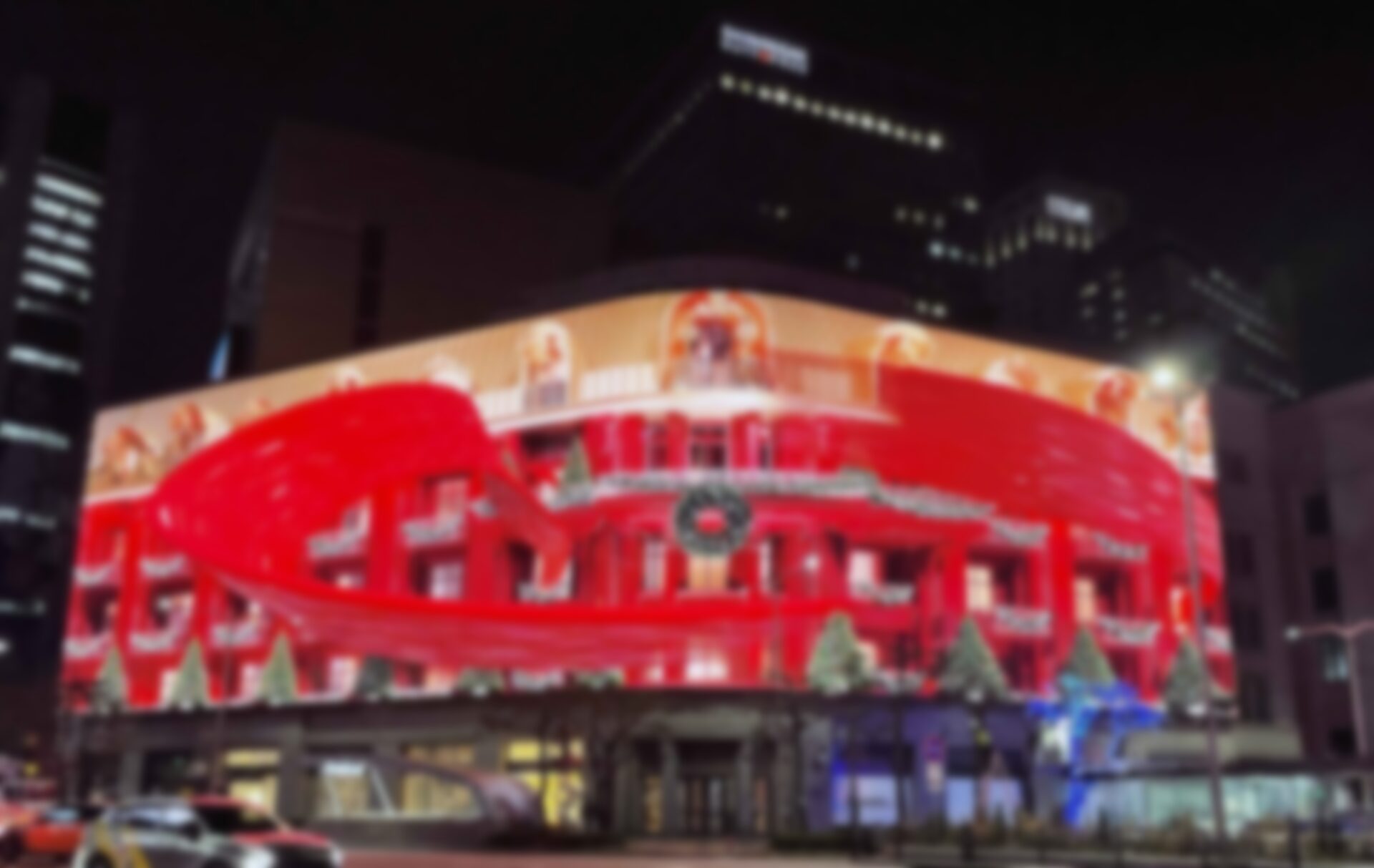 The 8mm pitch big boy spans 71.8 meters wide by 17.9 meters high, which rolls up to 1,285 square meters of digital canvas in a prime retail real estate district. The display can push 8,000 nits if needed (probably never) and supports 8K, including creative with 3D visual effects.
