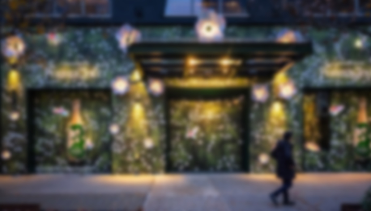 The NYC media solutions company Inwindow Outdoor was known in earlier days for street-level storescapes that mixed rear projection on empty shop windows with printed vinyl graphics to turn distressed real estate into sidewalk billboards. But recently it has focused more on multimedia work that blends technology with art in interesting ways – like this project done in New York and LA for the champagne house Perrier-Jouët.