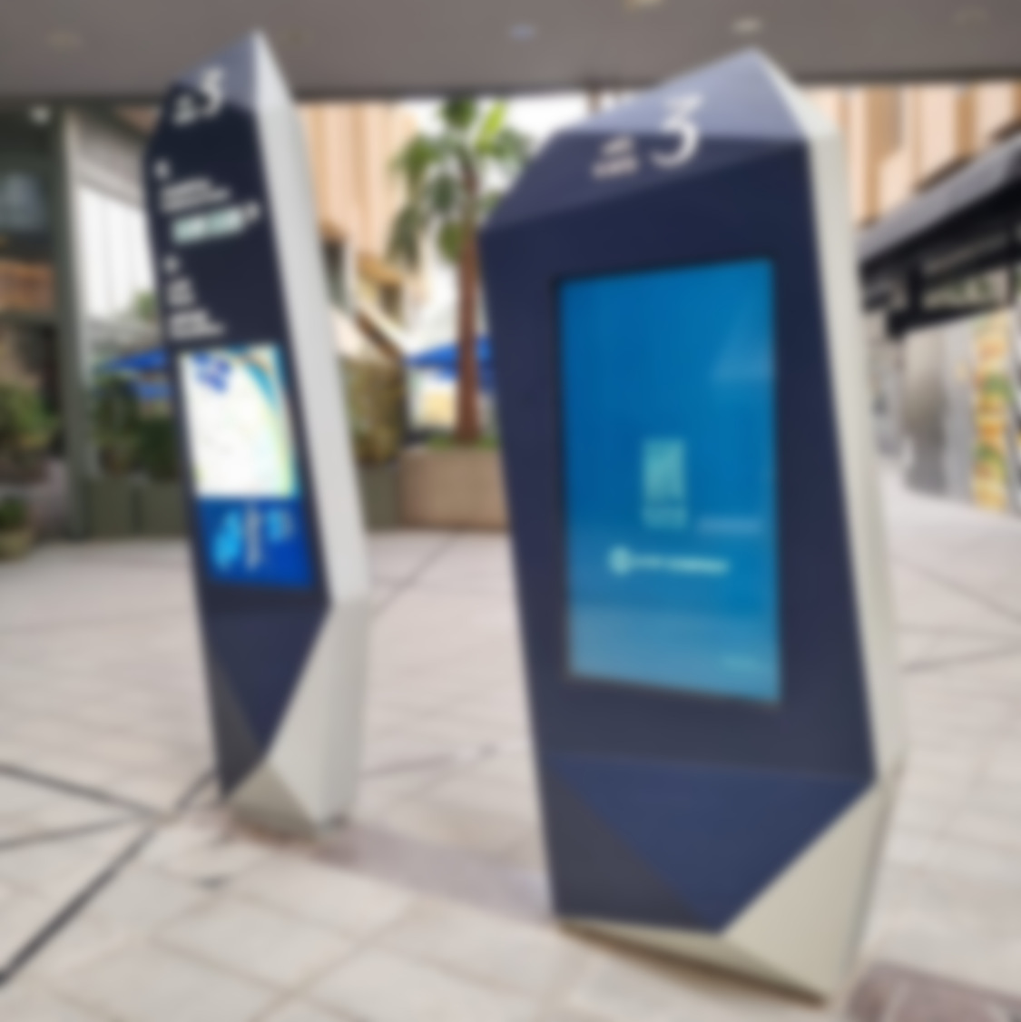 The signage network at KAFD includes over 15,500 static signposts and 355 digital screens. Among them are interactive kiosks that use facial recognition cameras to offer personalized directions and interactive maps. These aren’t off-the-shelf kiosk products – they have been custom-made to match the static displays and KAFD’s overall aesthetic.