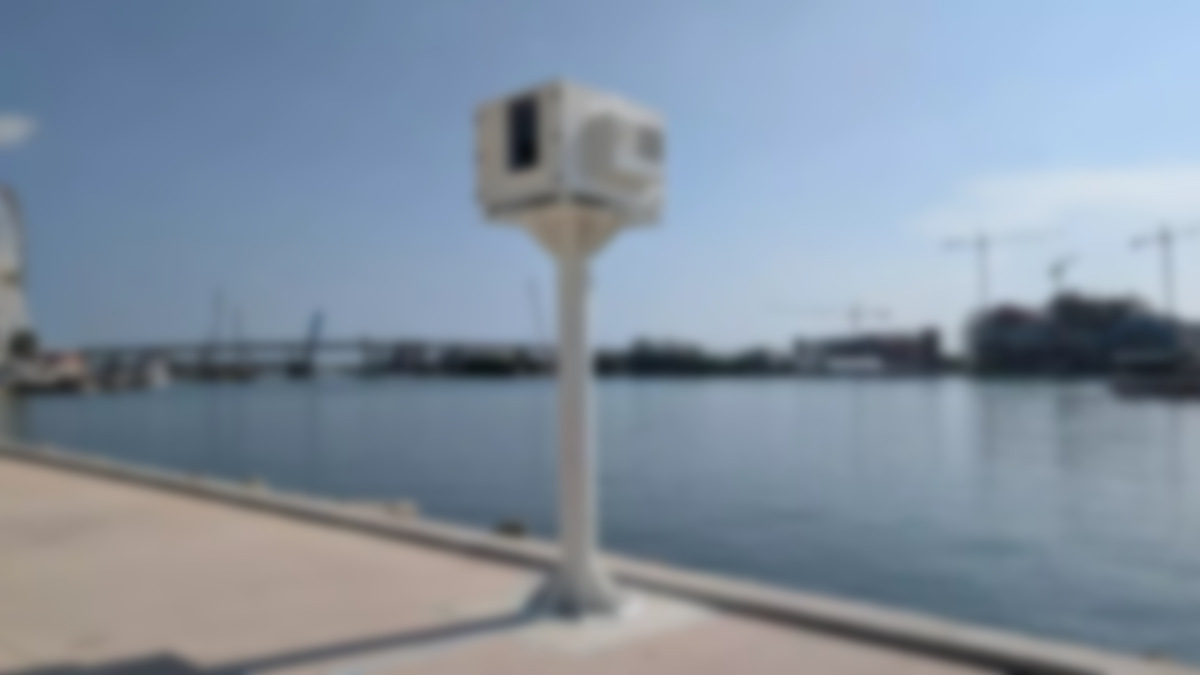 The challenges of outdoor operation in subtropical Florida are also evident in this permanently installed projector at central Bayfront Park. Its weatherproof housing is sealed against water and dust but still requires external cooling. The stand and ground mount are reinforced with heavy-duty screws, ensuring it remains secure and protected against the next tropical storm – which could strike at any time.
