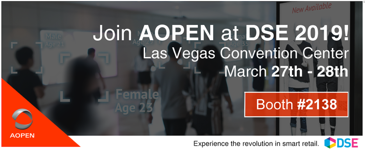 DSE 2019 Booth Preview: AOPEN Bringing Smart Tech To Data-driven Enterprises March 14, 2019 by Super User AOPEN America – DSE Booth Number #2138 Why do people going to DSE need to put your company on their Must See list of booths? AOPEN brings smart technologies to data-driven enterprises. AOPEN is currently deploying with its partners a variety of smart retail solutions: smart kiosks, Commercial Chrome, multi-display ad networks, machine vision, and AIoT …