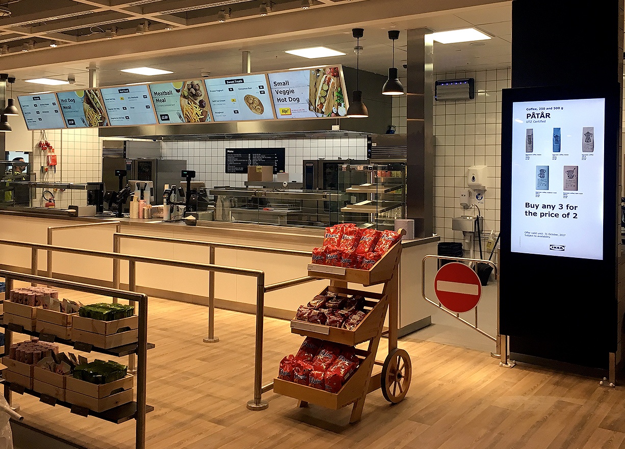 Projects: IKEA’s New Sheffield Store Includes Tidy Digital Menu And Promo System October 10, 2017 by Super User This is the tidy set of menu displays IKEA has at its food service counter in the newly opened store in Sheffield, UK. The displays were put in by Beaver Group and run that solutions provider’s “signage.ninja” software, which I THINK is a front-end gateway with Scala under the hood. Continuing the nationwide rollout with …