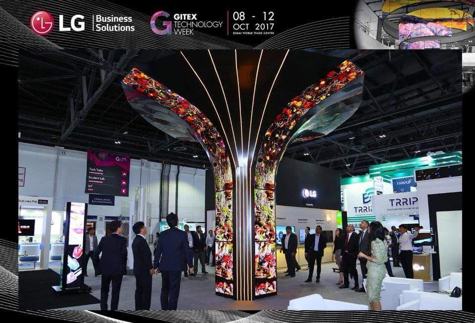 LG Plants OLED Palm Tree At Dubai’s GITEX Trade Show October 10, 2017 by Super User LG is using flexible OLED displays – made into a digital palm tree – as the centerpiece of its stand at the annual GITEX consumer electronics trade show and conference this week in Dubai. The OLEDs are open frame (no rigid borders) so they can flex concave or convex. The company has also been heavily …